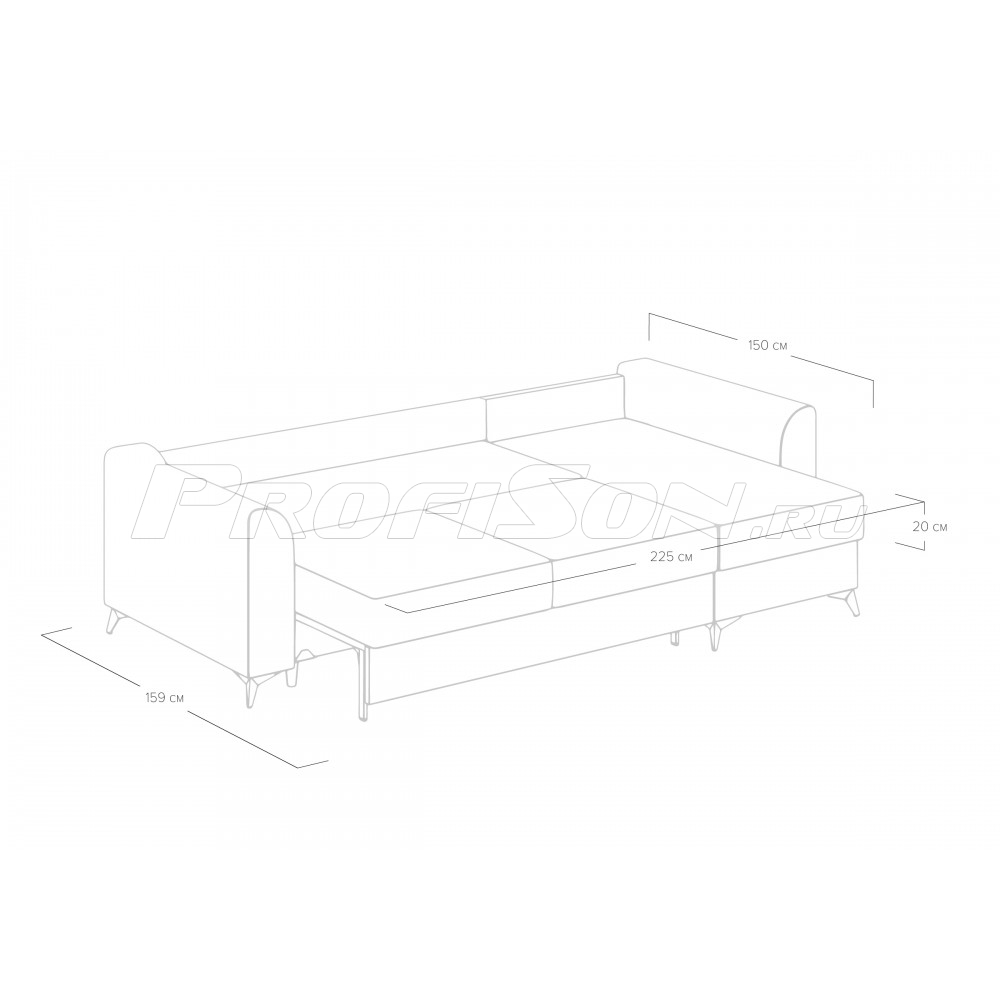 Диван Dario угловой - подходит для полноценного сна. Анатомический матрас средней жесткости с независимым пружинным блоком обеспечивает возможность правильного положения во время сна. Высота матраса 20 см. Широкое спальное место 150-225, как у двухспальной кровати.