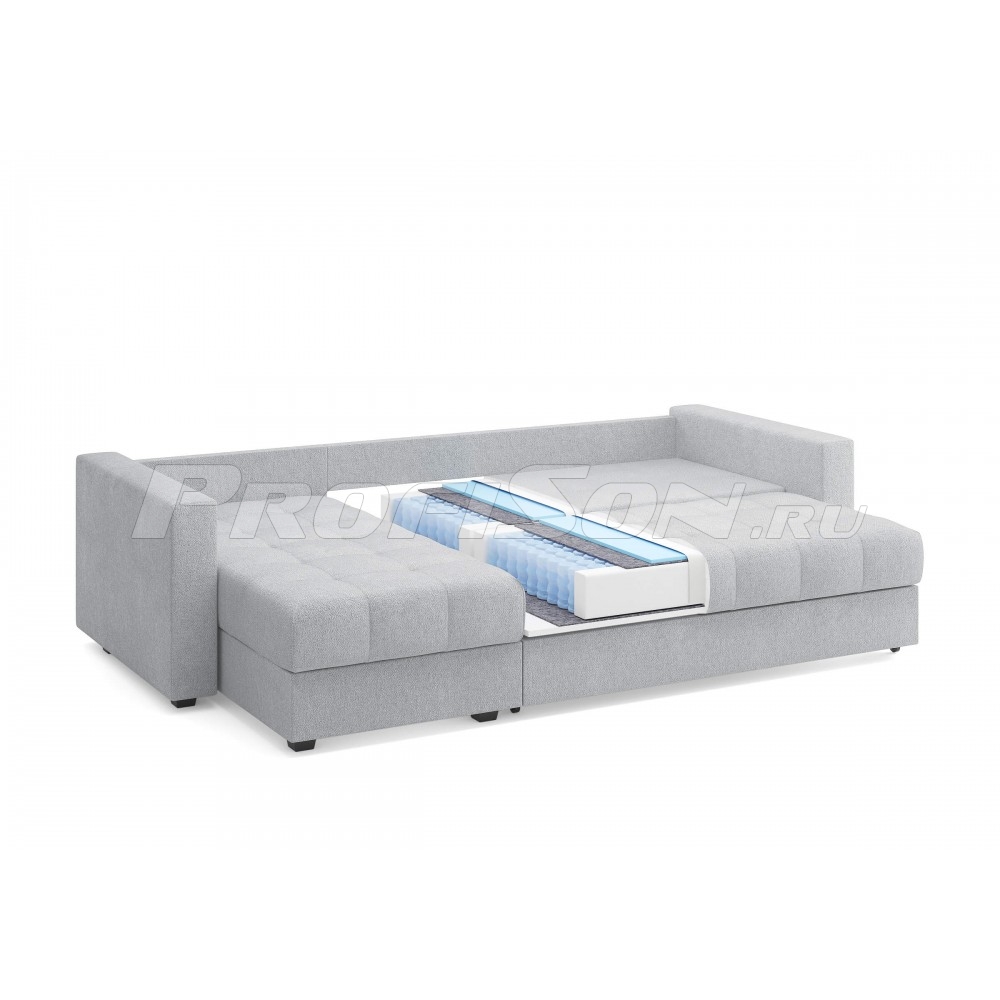 Диван Megapolis угловой - подходит для полноценного сна. Анатомический матрас средней жесткости с независимым пружинным блоком и высокоэластичной плотной пеной ErgoFoam обеспечивают возможность правильного положения и расслабления во сне. Высота матраса 20 см. Широкое и длинное спальное место 150-225, как у двухспальной кровати. Отлично подойдет для высоких людей. Основание ровное, сплошное – мебельный щит, гарантия комфорта и надежности! На выбор предлагается большой выбор обивок разных текстур и оттенков.