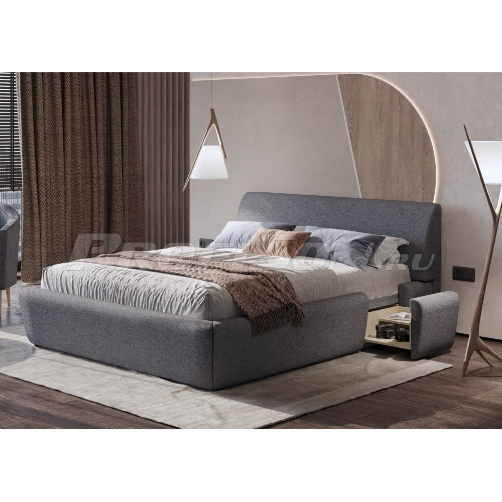 Кровать Орматек Concept - уникальная функциональность в сочетании с трендовым дизайном! Модель кровати со встроенными выдвижными тумбами предвосхищает самые смелые фантазии в интерьере, она прекрасно впишется в любую спальню от современной до классической. Изголовье изогнутой формы дает дополнительный уровень комфорта при отдыхе. Царги изогнутой формы делают кровать максимально травмобезопасной. Из-за особенностей конструктива в модели невозможно использовать подъемные механизмы. Но под основанием есть полезное пространство, которое можно использовать для хранения редко используемых вещей: чемодана, сезонной обуви и многого другого.