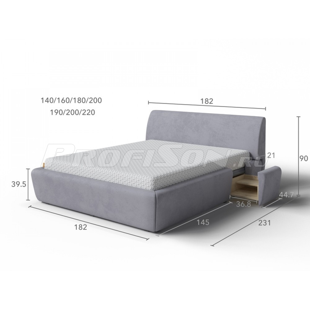 ➢ Учитывая небольшую высоту изголовья, для модели рекомендуются невысокие матрасы