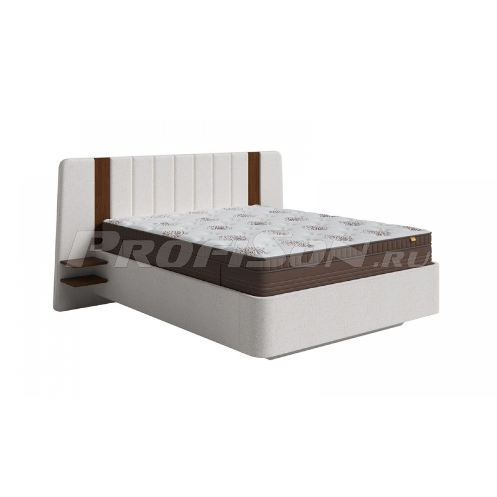 Кровать Орматек FlyEdge парящая - мягкая кровать с парящим эффектом с декоративным элементом из массива. Сочетает в себе элегантный дизайн и выдающуюся функциональность. Эта кровать станет настоящим украшением вашей спальни, придавая ей стильный и современный вид. Это не просто предмет мебели, это инвестиция в ваш комфорт и стиль. Создайте уютное пространство для отдыха и расслабления с этой уникальной моделью. Парящий царговый пояс - тренд в современном дизайне, имеет уникальную конфигурацию, которая объединяет эффектный внешний вид и максимальную функциональность. Парящая конструкция и продуманные детали позволят наслаждаться комфортом и красотой в личном пространстве. Закругленный безопасный стык царг, объемные элементы изголовья, стильная вставка из массива сосны цвета Мокко, эффект парения - все это привлекает внимание и делает кровать ярким акцентом в спальне.