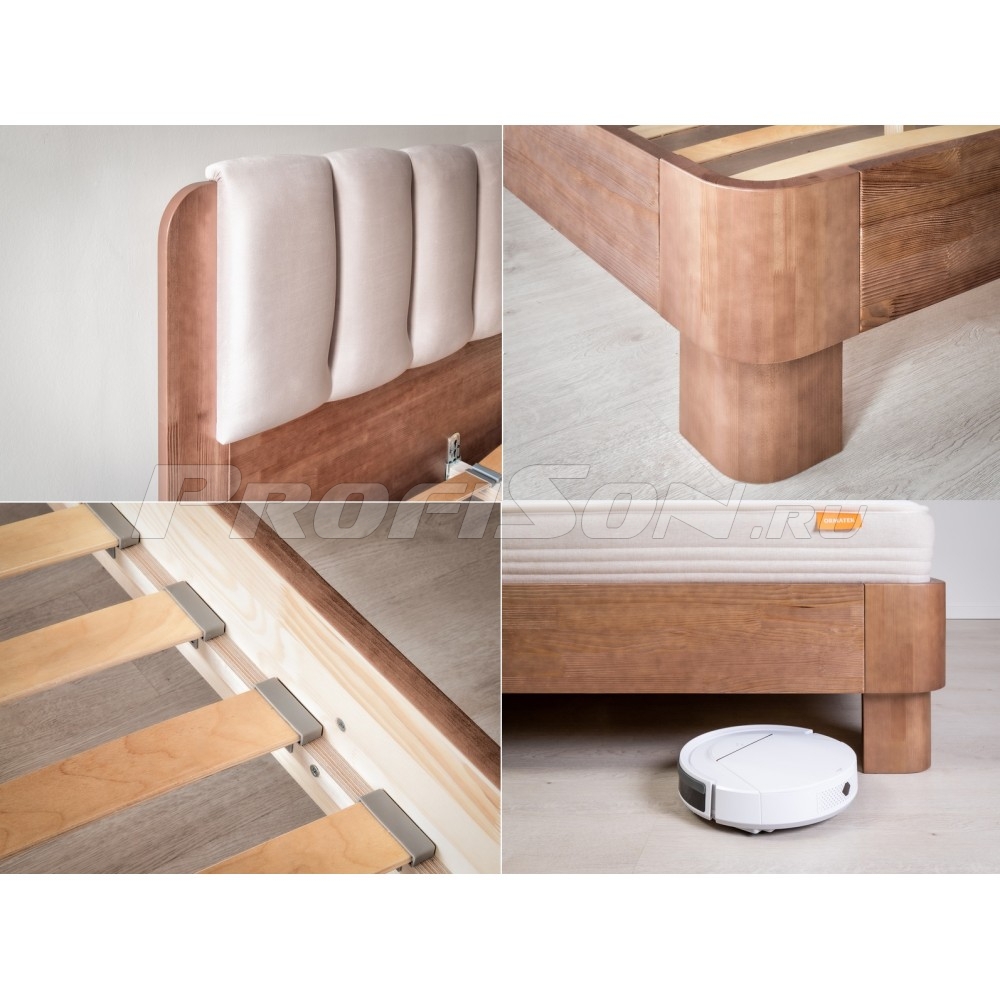 2. Экологически чистые материалы и новая технология – скруглённые углы в изножье. Натуральность материалов гарантирует безопасность для здоровья покупателю и его близким, а скруглённые углы в изножье позволят без опасений перемещаться по спальне.