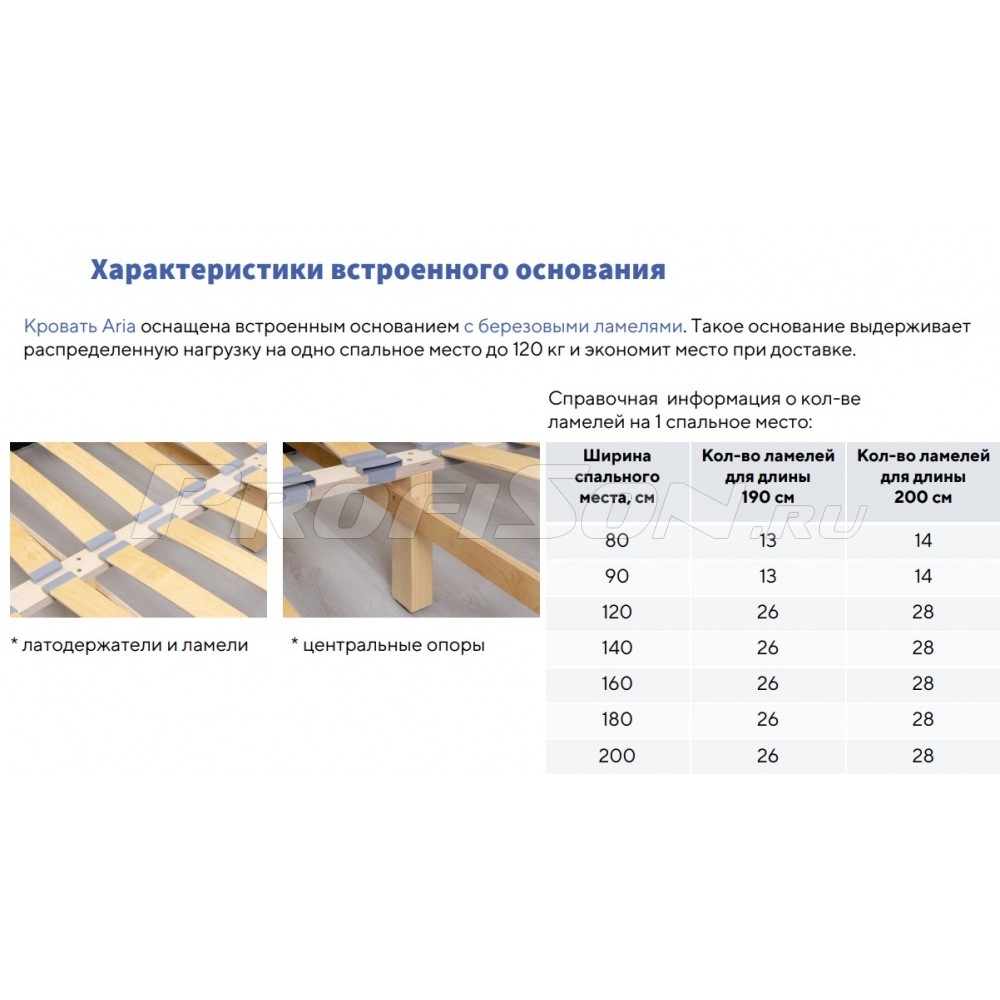 Кровать Aria оснащена встроенным основанием с березовыми ламелями.