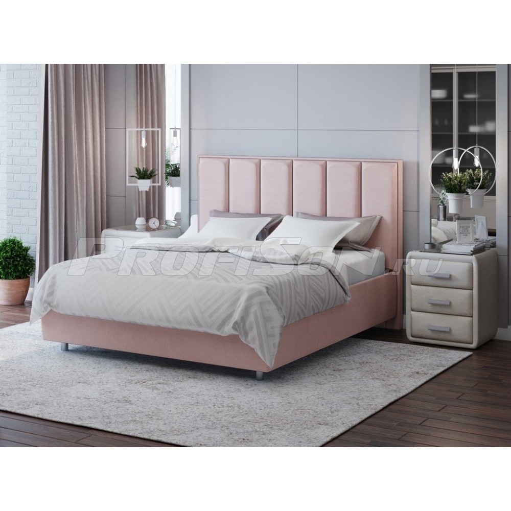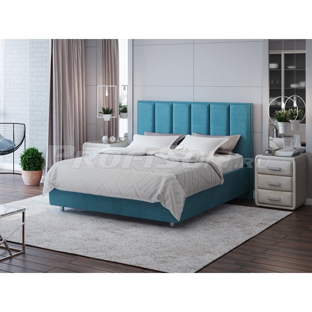 Кровать ProSon Routa - стильная мягкая кровать из коллекции Geometry с высоким объемным изголовьем, украшенным вертикальной стяжкой. Лаконичность, изящество и практичность дизайна - изюминка данной модели. Высокие ножки позволяют легко проводить уборку без передвижения кровати. Широкий выбор качественных обивок из мебельной ткани различных текстур и цветов дает возможность подбора нужного решения для любой спальни.
