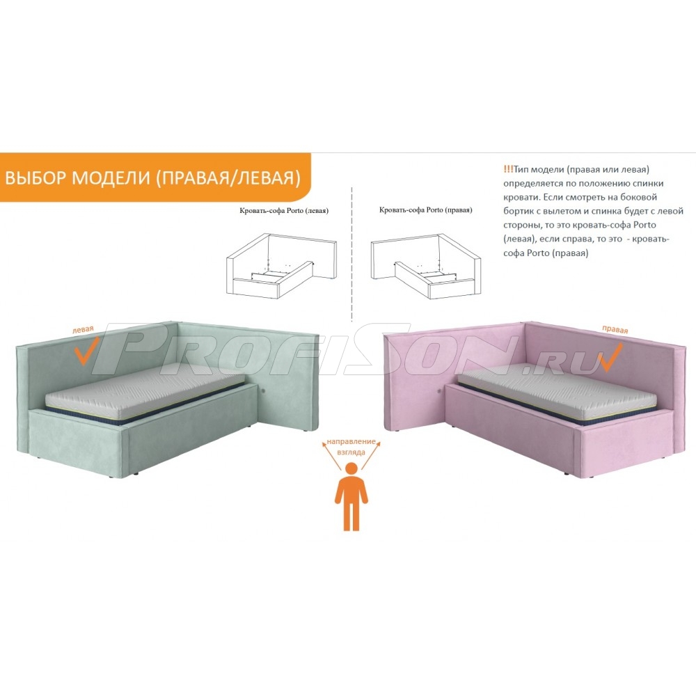 !!!Тип модели (правая или левая) определяется по положению спинки кровати. Если смотреть на боковой бортик с вылетом и спинка будет с левой стороны, то это кровать-софа Porto (левая), если справа, то это - кровать-софа Porto (правая).