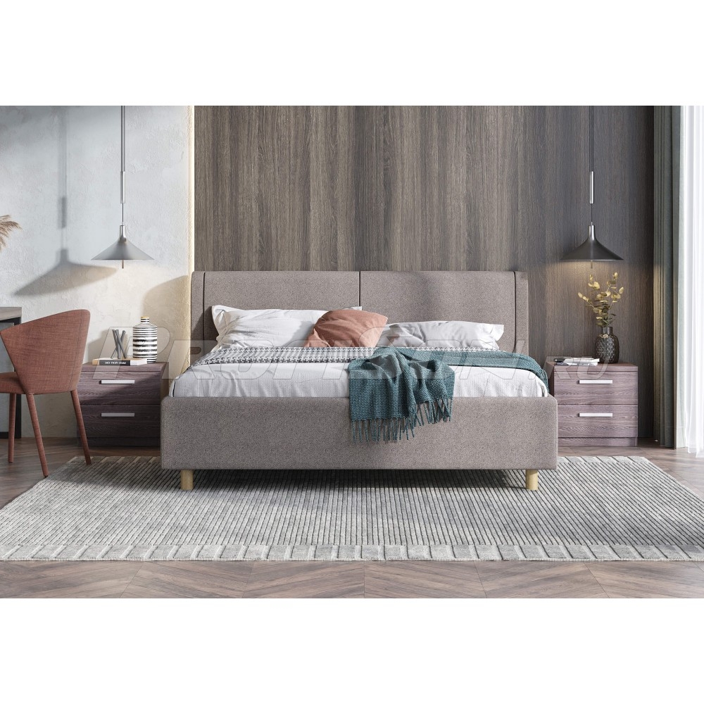 Кровать Сонум Barcelona - стильная кровать с мягким изголовьем в обивке из мебельной ткани. Данная модель соответствует самым модным тенденциям. Кровать универсальна для интерьера в стиле Модерн, Современный, Лофт, Скандинавский, Минимализм. Она прекрасно впишется в современный интерьер любой спальни. Очаровывает своей простотой и создает атмосферу отдыха и релакса. Мягкие подушки, лаконичные формы, внешне кровать напоминает уютный «разобранный диван», только это настоящее спальное место комфортное и просторное. Разнообразие вариантов исполнения – достоинство данной модели. Задняя часть спинки кровати выполнена в основной ткани, благодаря этому ее можно установить в центре комнаты. Увеличенная прочность кровати достигается за счет металлического каркаса по периметру. Стильные высокие деревянные ножки из бука обеспечивают просвет до 12 см. Расстояние от пола до царг способствует легкой уборке под кроватью, в том числе роботом – пылесосом.