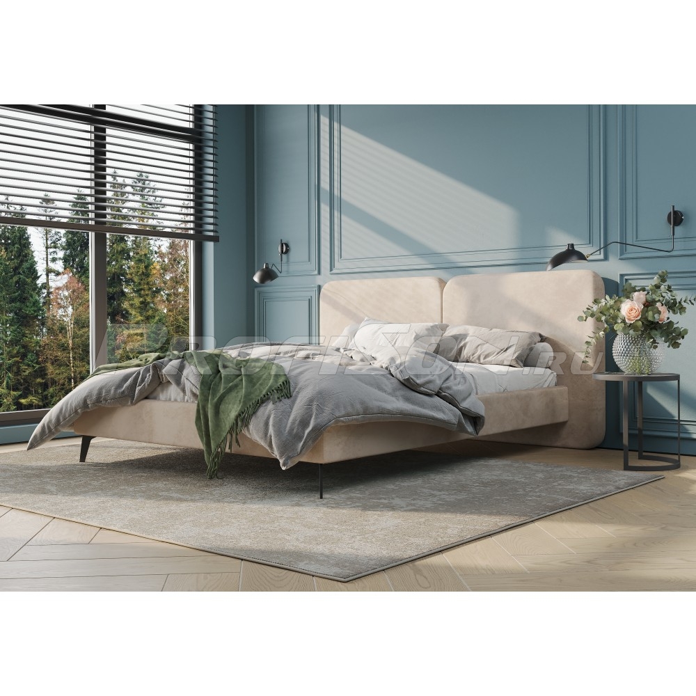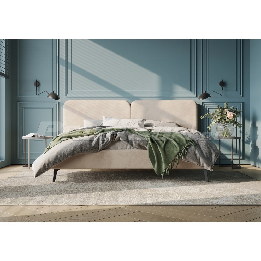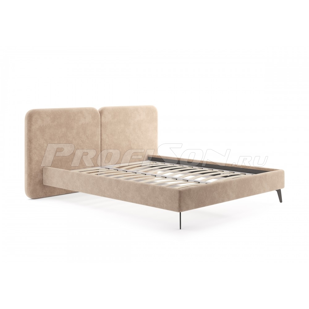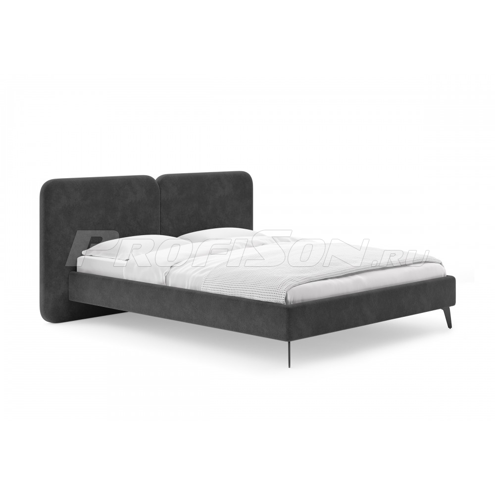 Кровать Сонум Brooklyn - стильная современная мягкая кровать с высокими металлическими опорами, тренд мебельной моды. Дизайн кровати удачно подойдет для интерьеров в современном, стиле mid-century модерн. Закругленные углы, узкие царги, металлические опоры черного цвета выделяют Brooklyn из многообразия интерьерных моделей и делают ее востребованной для дизайнерских интерьеров. Изголовье выполнено в виде двух мягких подушек, они крепятся друг к другу с помощью прочного клинового соединения. Задняя часть спинки изготавливается в основной ткани - кровать можно установить в центре комнаты. Царги выполнены по технологии съемного чехла, который надежно крепится на липучке. Такое исполнение позволяет легко ухаживать за обивкой и делает углы кровати мягкими и аккуратными внешне. Узкие царги и изящные металлические опоры, делают кровать легкой и лаконичной. Металлические опоры, черного цвета (высота 16 см). Расстояние от пола до царг способствует легкой уборке под кроватью, в том числе роботом – пылесосом. На выбор предлагается большой выбор обивок разных текстур и оттенков.