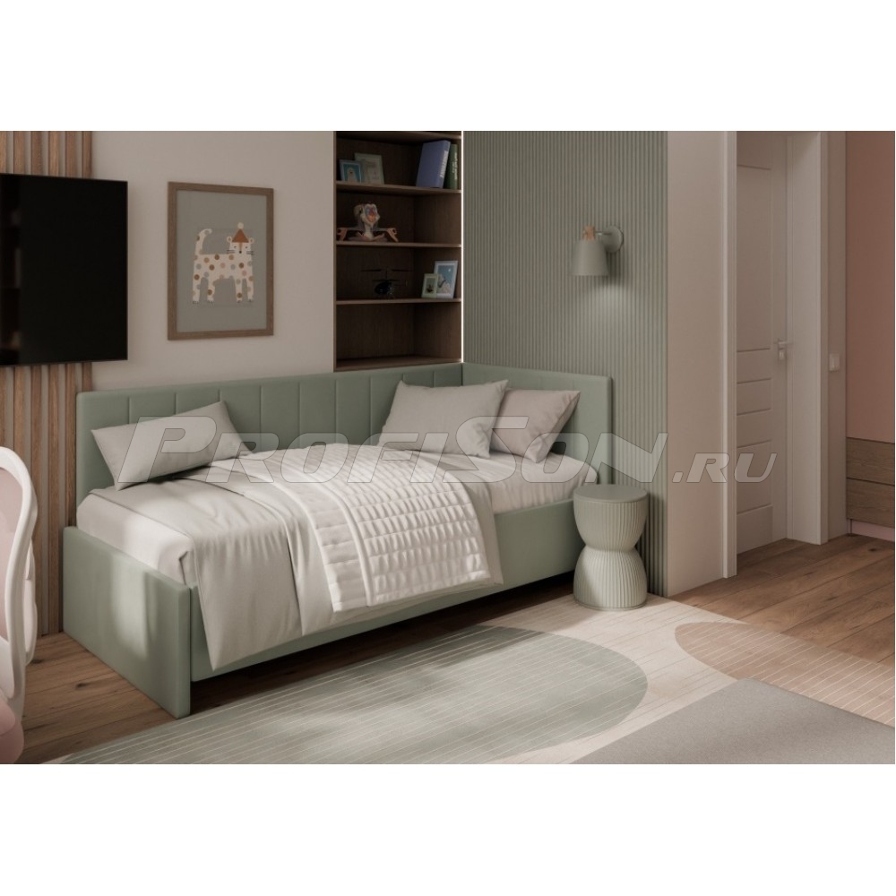 Кровать Сонум Emily - трендовая угловая кровать-софа/тахта в обивке из мебельной ткани. Кровать-софа с одной боковой спинкой станет отличным решением как для гостиной, так и спальни. Также это отличный вариант спального места для детей и подростков. Возможно использование в качестве дивана и дополнительного спального места (например, для гостей). Лаконичный стиль изделия и разнообразие выбора обивки позволит легко комбинировать кровать с любой другой мебелью. При сочетании с интерьерными подушками - кровать выглядит, как аккуратный диван, при этом не перестает быть качественным спальным местом в сочетании с матрасом. Благодаря простоте форм и легкому дизайну кровать будет смотреться модно, стильно и элегантно в любом интерьере. Боковую спинку кровати можно установить на правую или левую сторону, что делает модель универсальной. Боковая спинка (которая по ширине) по умолчанию полностью обита основной тканью.