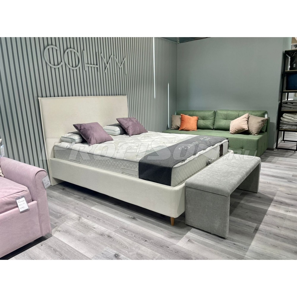 Кровать Сонум Eveline - новинка! стильная мягкая кровать в обивке из мебельной ткани с высоким минималистичным изголовьем на высоких ножках. Кровать Eveline выглядит эффектно благодаря мягкому высокому изголовью с декоративным кантом по периметру и опорам из натурального дерева. Модель будет смотреться выигрышно и актуально в интерьере в скандинавском стиле, делая спальню уютнее, настраивая на отдых.