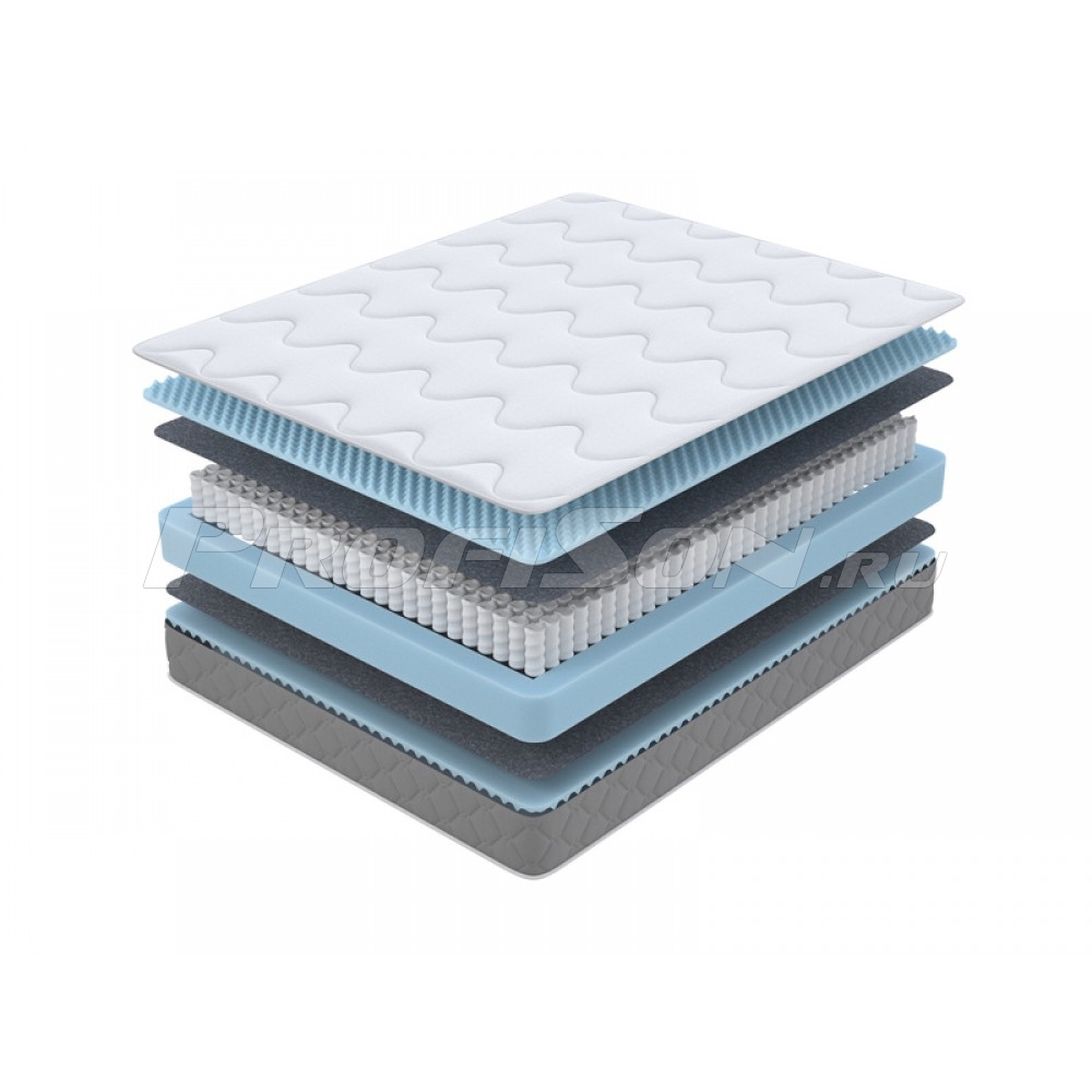 - Основа матраса - независимый пружинный блок EVS500 PRO - плотность пружин в блоке - 256 шт. на м2, каждая пружина помещена в отдельный чехол из спанбонда и физически не связана с соседней, чехлы скреплены между собой. Высота блока 14 см, диаметр проволоки 1,7 мм.