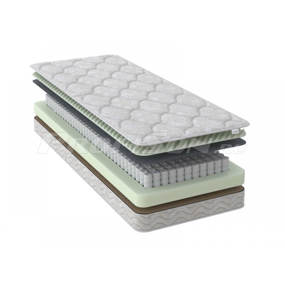 - Основа матраса - независимый анатомический пружинный блок EVS 500 - плотность пружин в блоке EVS - 250 шт. на м2, каждая пружина помещена в отдельный чехол из спанбонда и физически не связана с соседней, чехлы скреплены между собой. Высота блока 8 см, диаметр проволоки 1,8 мм.