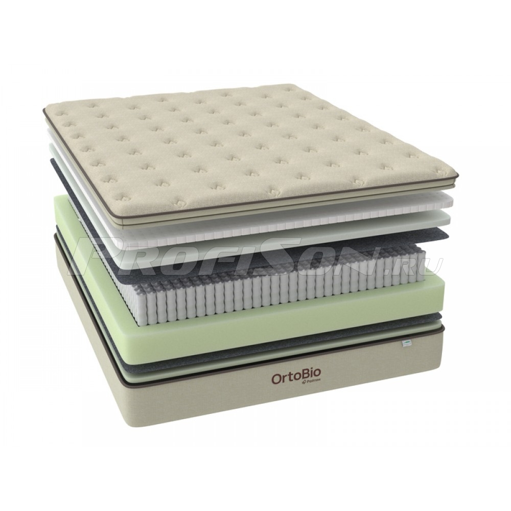 Преимущественная особенность матрасов OrtoBio (ОртоБио) - Льняной чехол «Linen» – для матрасов OrtoBio создали чехол на основе трикотажной ткани с высоким показателям содержания льна. Льняная ткань обладает способностью активно угнетать жизнедеятельность болезнетворной микрофлоры, имеет более выраженную микробную сорбцию по сравнению с хлопчатобумажной тканью. Ткань со льном, утверждают ученые, ослабляет воздействие неблагоприятной экологии, не накапливает статического электричества, а потому дольше остается чистой, не липнет к телу и не сбивается складками. Лен хорошо согревает зимой, а душными летними ночами создает ощущение прохлады, отводя избыток тепла от кожи. Льняной чехол с точечной фирменной стежкой «Райтон», которая, работая в системе чехла матраса, не передавливает сосуды на спине спящего на ней человека, тем самым, не препятствуя кровообращению во время сна. Дополняет качественную ткань - дизайнерский мебельный бурлет с фирменной вышивкой и выразительным кантом.