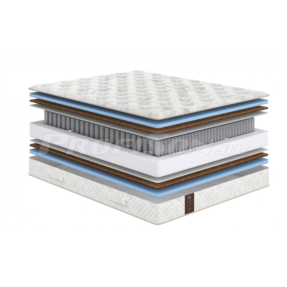 Матрас Сонум Dianta Hard - модель высокой жесткости. В матрасе используется кокосовая койра и современный гипоаллергенный материал Foam. Основа матраса - улучшенный блок независимых пружин ChessPocket, плотностью 620 пружин на спальное место. Особенность блока ChessPocket - расположение пружин в виде пчелиных сот в шахматном порядке, что позловяет избежать пустот в пружинном блоке. Такой пружинный блок максимально надежен и ортопедичен. Кокосовая койра обеспечивает необходимую жесткость и уверенную поддержку. Наполнитель Фоам обладает свойствами качественного пенного материала, устойчивого к постоянным нагрузкам. Имеет среднюю плотность, хорошо распределяет давление по поверхности матраса, устойчив к слеживанию, экологически чистый, гипоаллергенный. Премиальный хлопковый белый войлок используется в данной модели в качестве изоляции и дополнительно придет ещё более уверенность матрасу по жесткости. Чехол выполнен из высококачественного трикотажа. Пакет стежки - гипоаллергенное волокно+ППУ. Высота матраса 28 см.