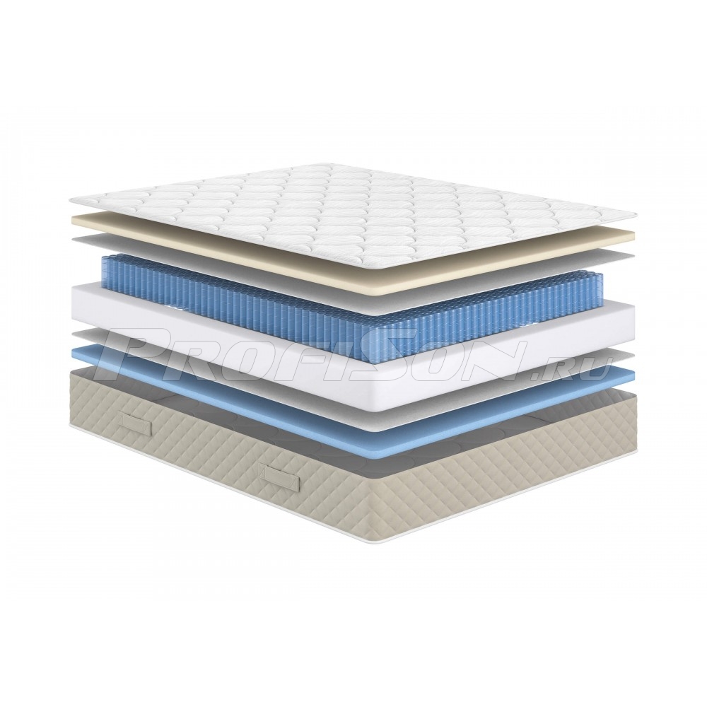- Основа матраса - независимый пружинный блок MultiPocket - плотность пружин в блоке - 1024 шт. на м2, каждая пружина помещена в отдельный чехол из спанбонда и физически не связана с соседней, чехлы скреплены между собой.