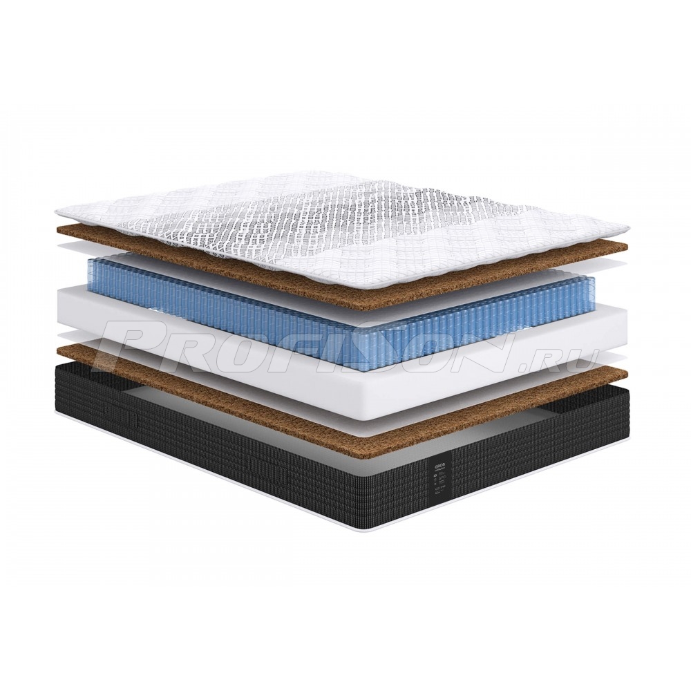 - Основа матраса - независимый анатомический пружинный блок MultiPocket - плотность пружин в блоке - 1024 шт. на м2, каждая пружина помещена в отдельный чехол из спанбонда и физически не связана с соседней, чехлы скреплены между собой.