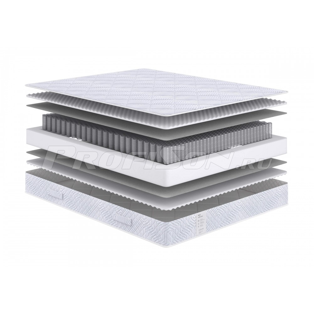 - Основа матраса - независимый анатомический пружинный блок ChessPocket620 - плотность пружин в блоке - 310шт. на м2, каждая пружина помещена в отдельный чехол из спанбонда и физически не связана с соседней, чехлы скреплены между собой.
