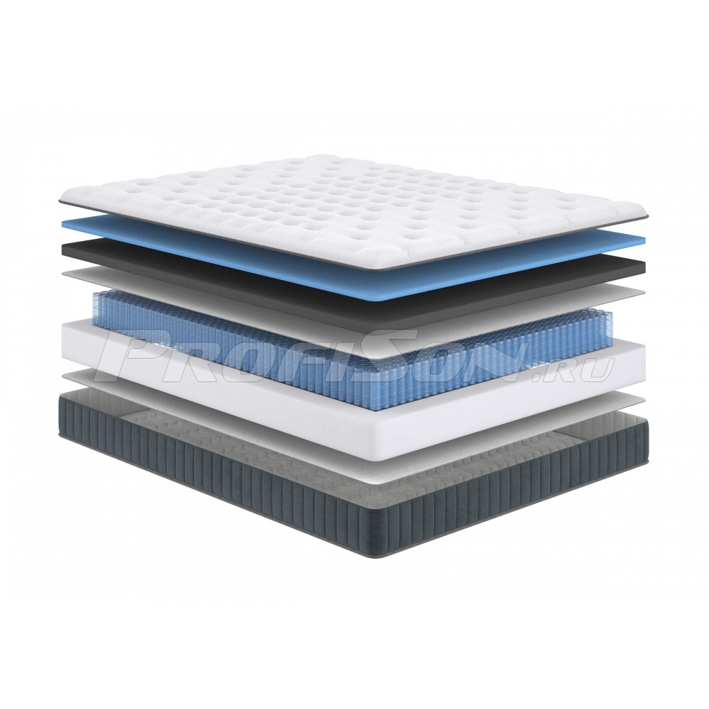 - Основа матраса - независимый анатомический пружинный блок MultiPocket - плотность пружин в блоке - 1024 шт. на м2, каждая пружина помещена в отдельный чехол из спанбонда и физически не связана с соседней, чехлы скреплены между собой.
