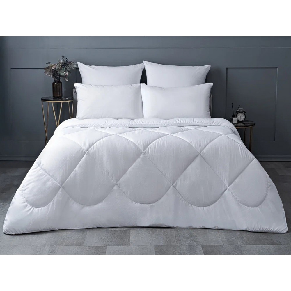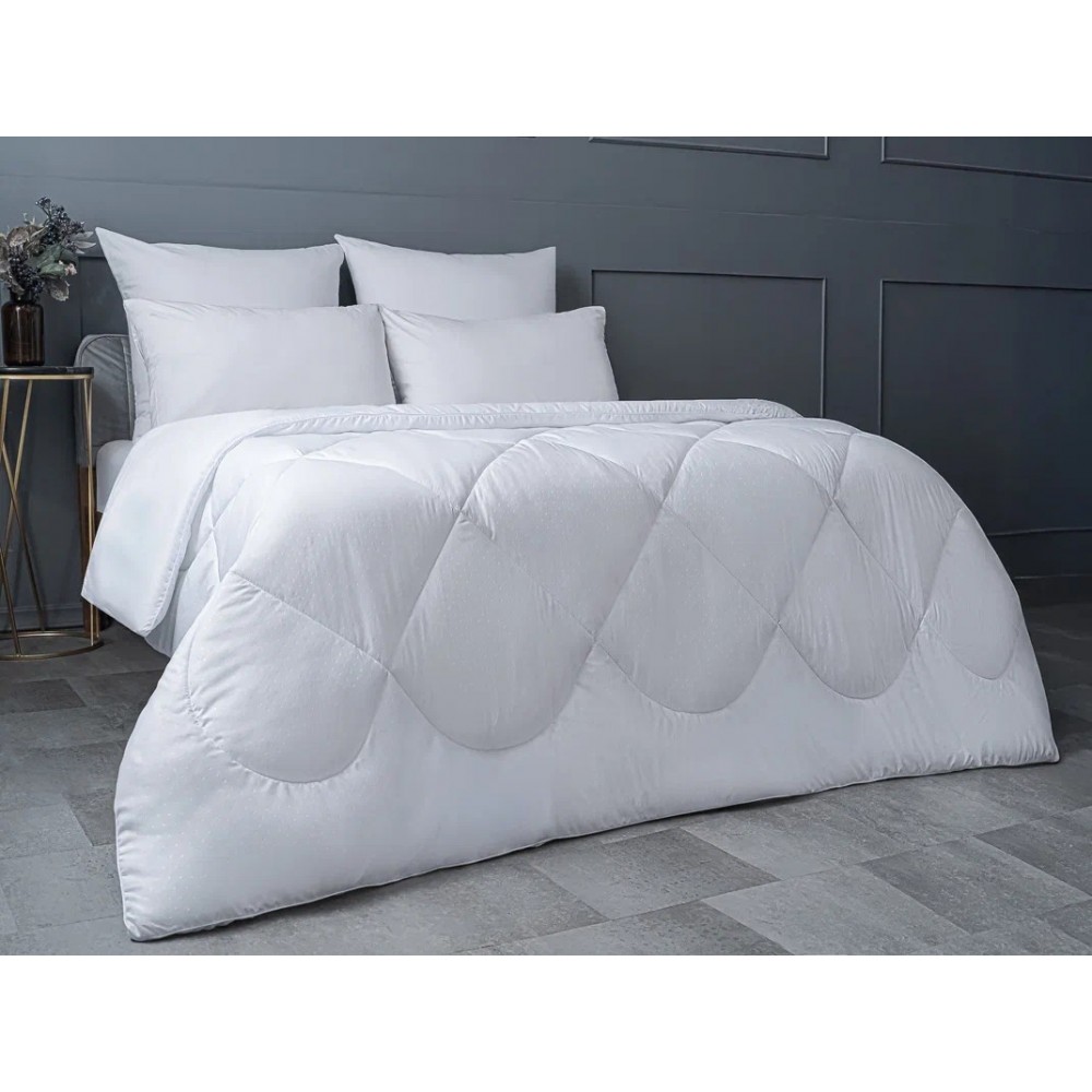 Полиэфирные волокна удачно сочетают теплозащитные и вентилирующие свойства. Надежно сохраняя тепло, они позволяет беспрепятственно уходить лишней влаге. Одеяло из полиэфира безопасно и гипоаллергенно. Полиэфир не выделяет никаких испарений, не имеет посторонних запахов и не удерживает запахи. Полиэфирные волокна – воздушные и мягкие, но прочные и долговечные. Переплетаясь между собой, они образуют упругую пружинистую структуру. Это свойство позволяет волокну быстро восстанавливать свою форму после сжатия и сохранять ее в течение всего срока эксплуатации. Одеяло имеет чехол из белой плотной ткани микрофибра, фигурная стежка хорошо скрепляет наполнитель с тканью, за счет этого полотно не сбивается в комки.