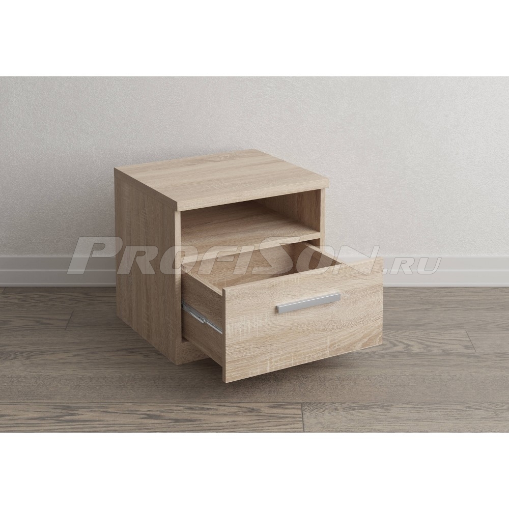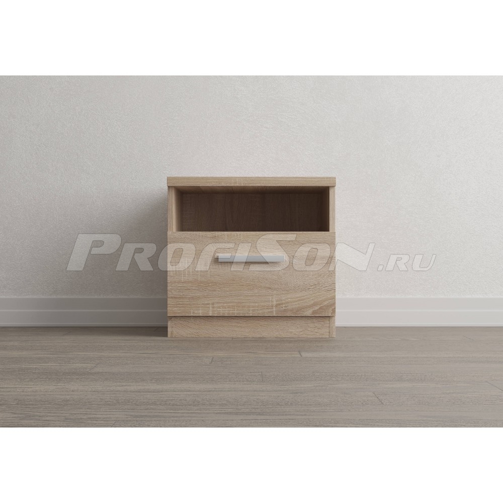 Тумба прикроватная Сонум Авангард 1 с 1-м ящиком - прикроватная тумба современного дизайна и расцветок из ЛДСП. Глубокий и вместительный ящик тумбы позволяет хранить в доступном месте все необходимые вещи. Прикроватная тумба с одним выдвижным ящиком и нишей сочетается с любыми моделями кроватей. Прямые углы, лаконичные металлические ручки, увеличенная толщина плиты ЛДСП 25 мм. Кромка ПВХ увеличенной толщины надежно защищает ЛДСП от попадания влаги, сколов и расслаивания. Стильная и практичная тумба прекрасно дополнит собой любой интерьер. Шариковые направляющие позволяют легко выдвигать ящик, а металлические ручки придают строгость. Задняя стенка тумбы вставлена в пазы боковых стенок и столешницы, что придает жесткость конструкции и выглядит эстетично.