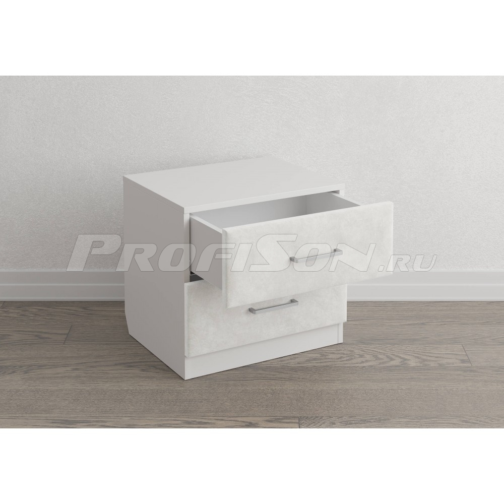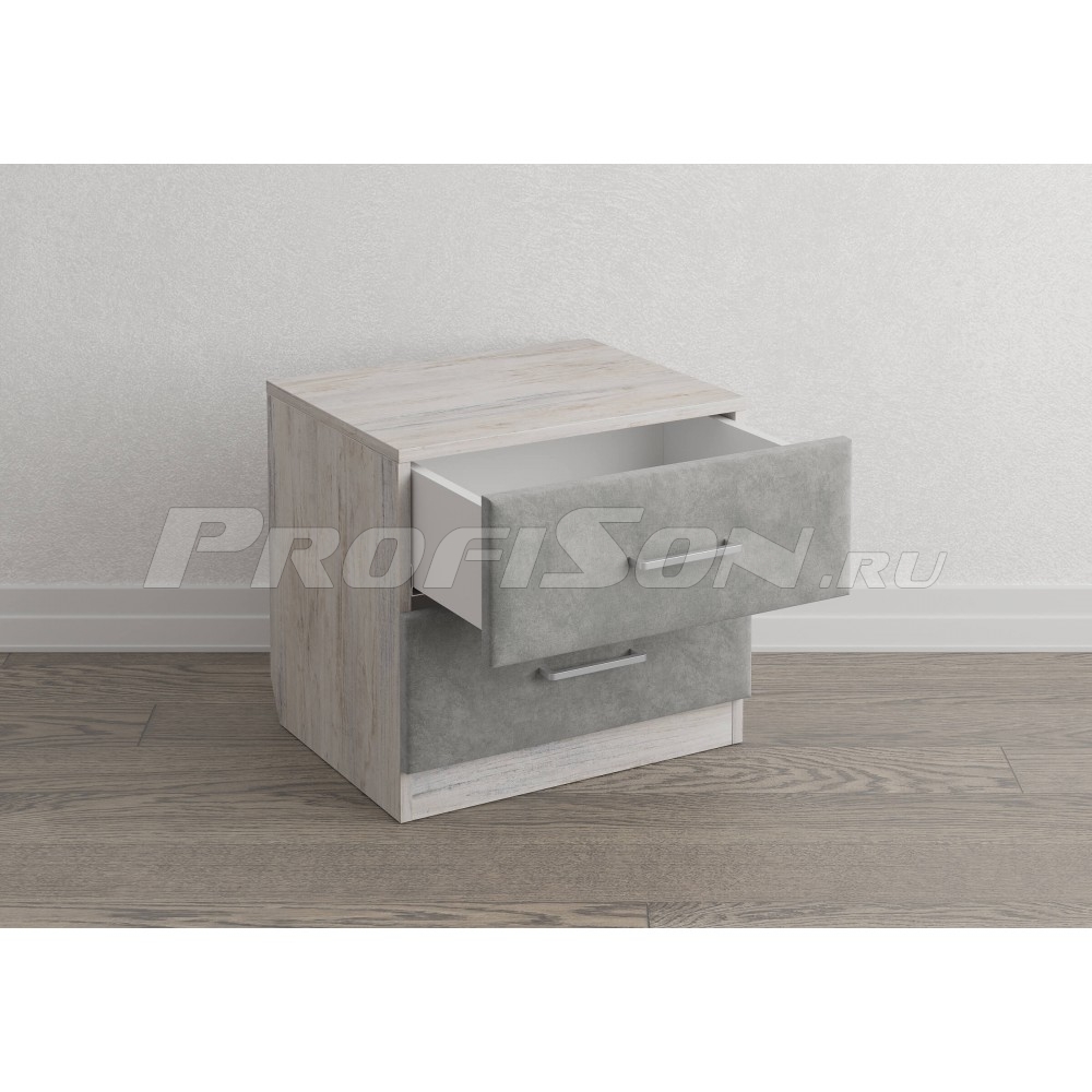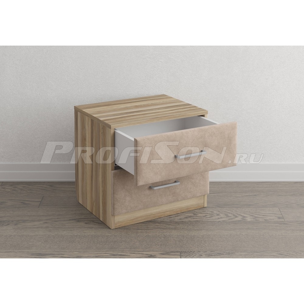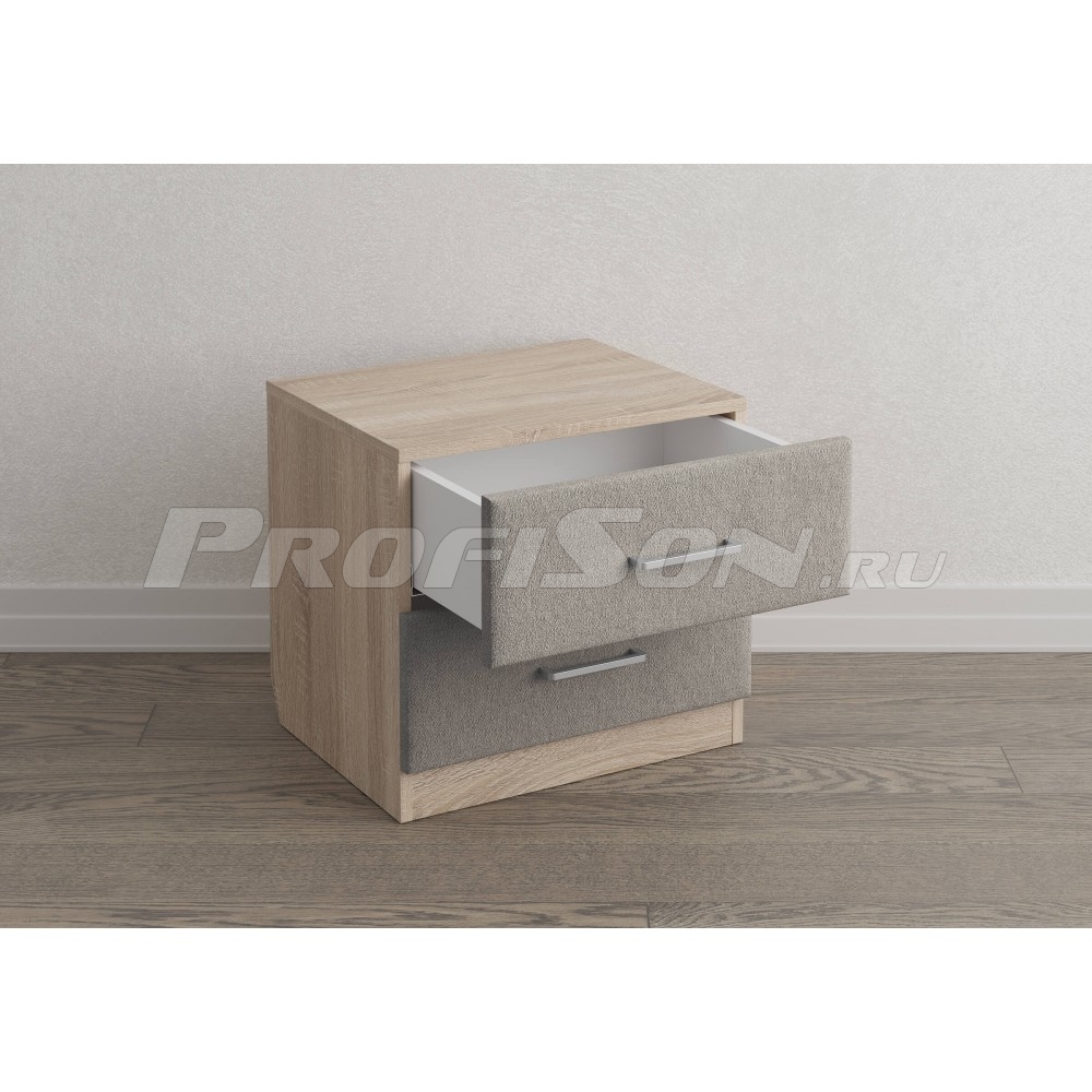 Тумба прикроватная Сонум Tomas 2 ящика - трендовая комбинированная прикроватная тумба современного дизайна из ЛДСП с мягкими ящиками в обивке из мебельной ткани. Легкий в уходе материал корпуса сочетается с акцентными мягкими деталями ящиков и стильной фурнитурой. Конструкция тумбы предусматривает два вместительных выдвижных ящика с направляющими скрытого монтажа и доводчиками.